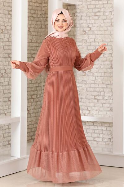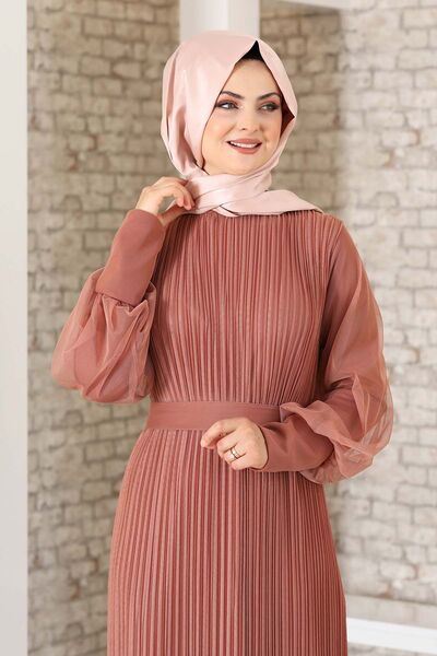 Begüm Pilise Detay Elbise Soğan Kabuğu - Fashion Showcase Design - FSC3017