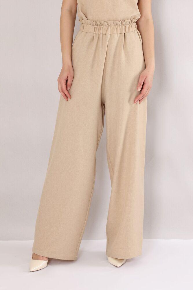 Beli Lastikli Bol Paça Keten Pantolon - Bej - FSC3112