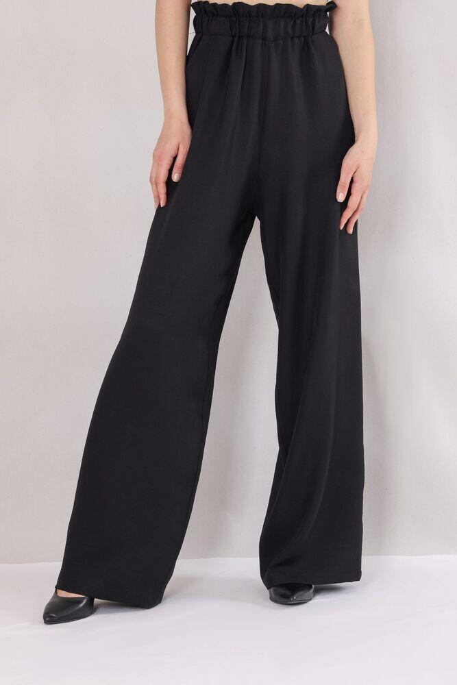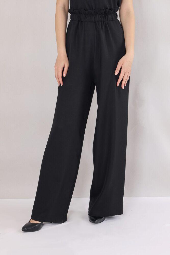 Beli Lastikli Bol Paça Keten Pantolon - Siyah - FSC3112