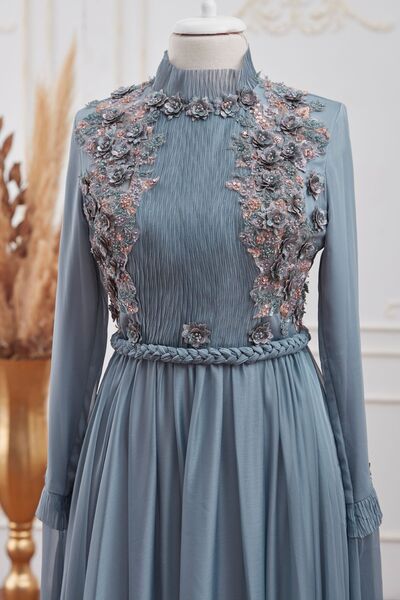 Birşah Abiye Mavi - Dresslife Tesettür Giyim - ALM2107