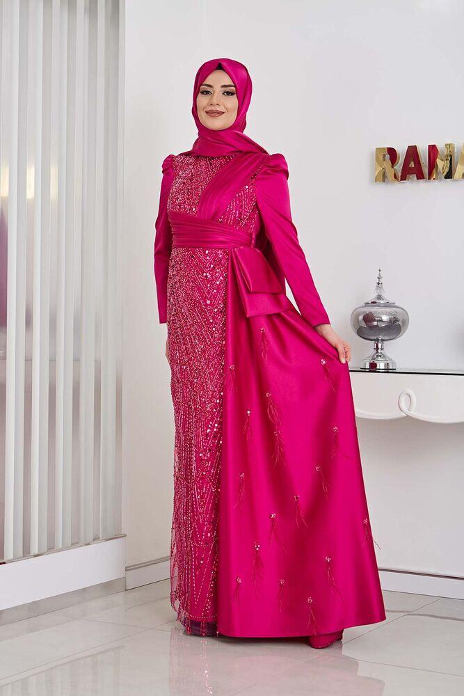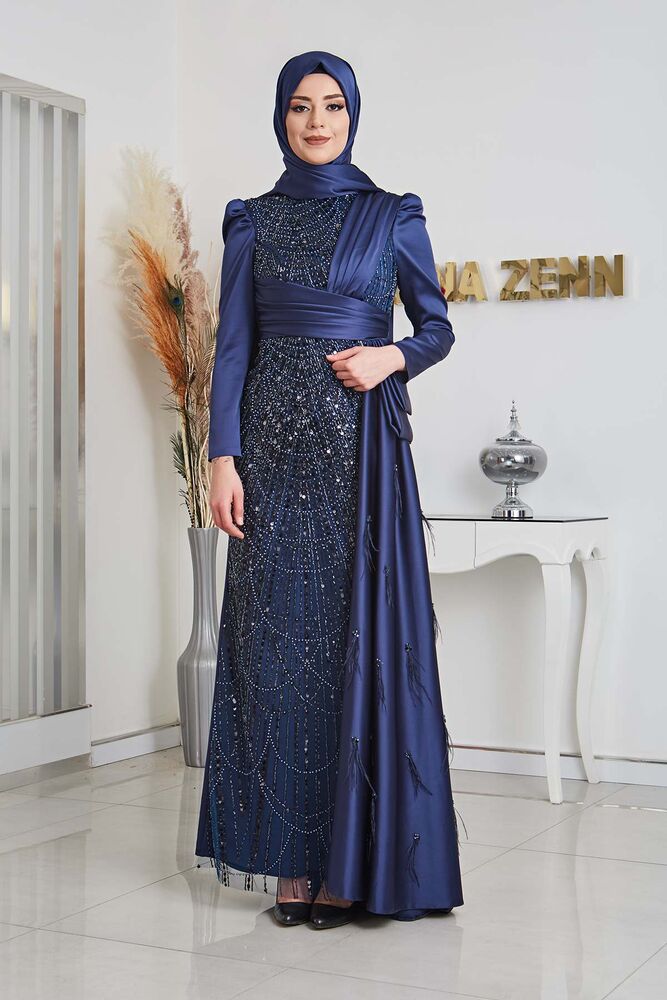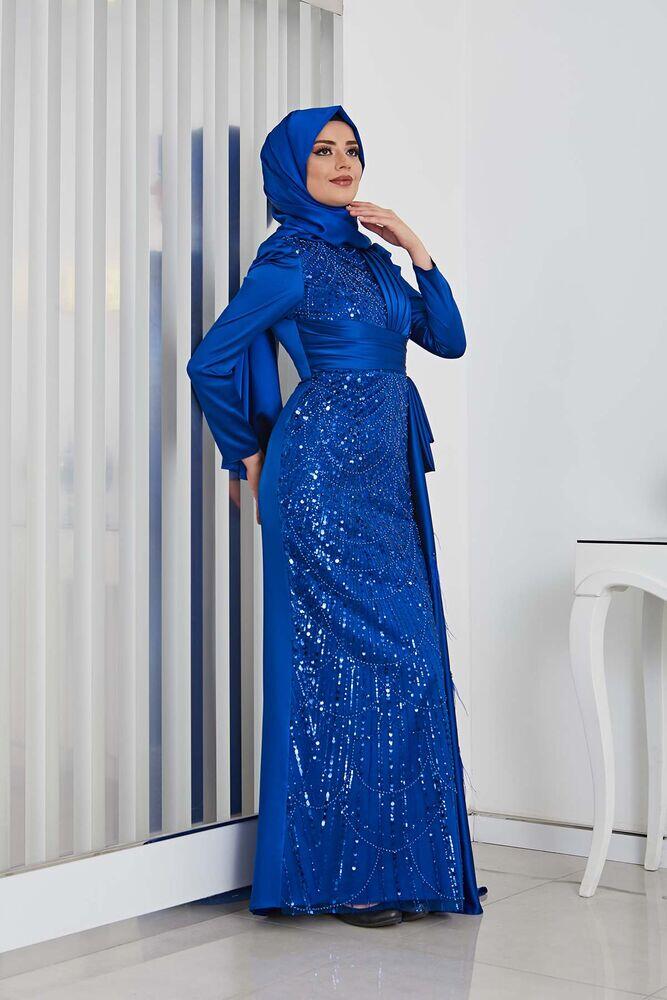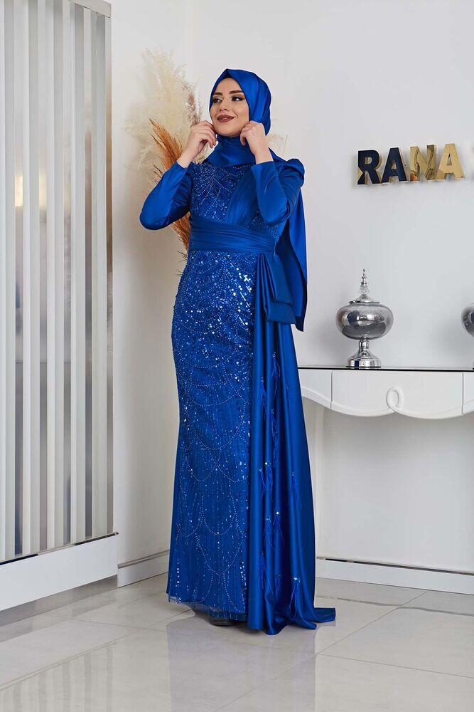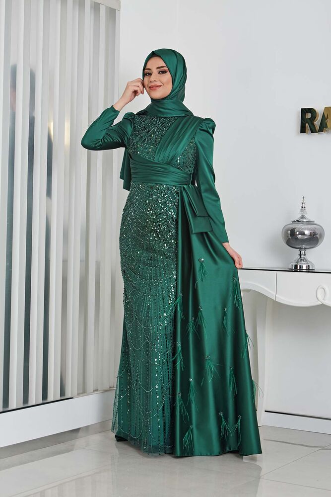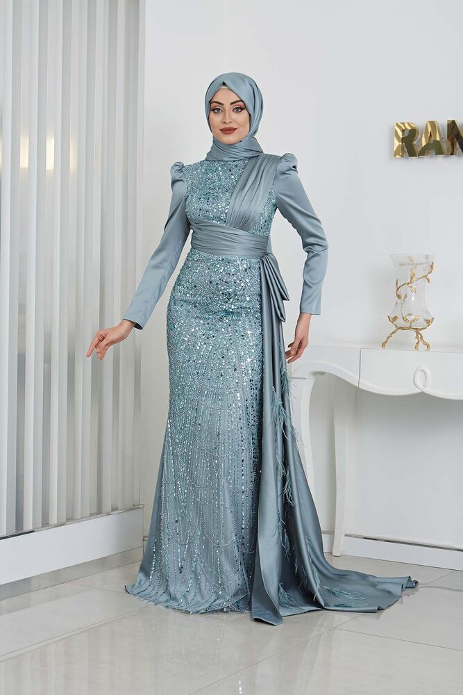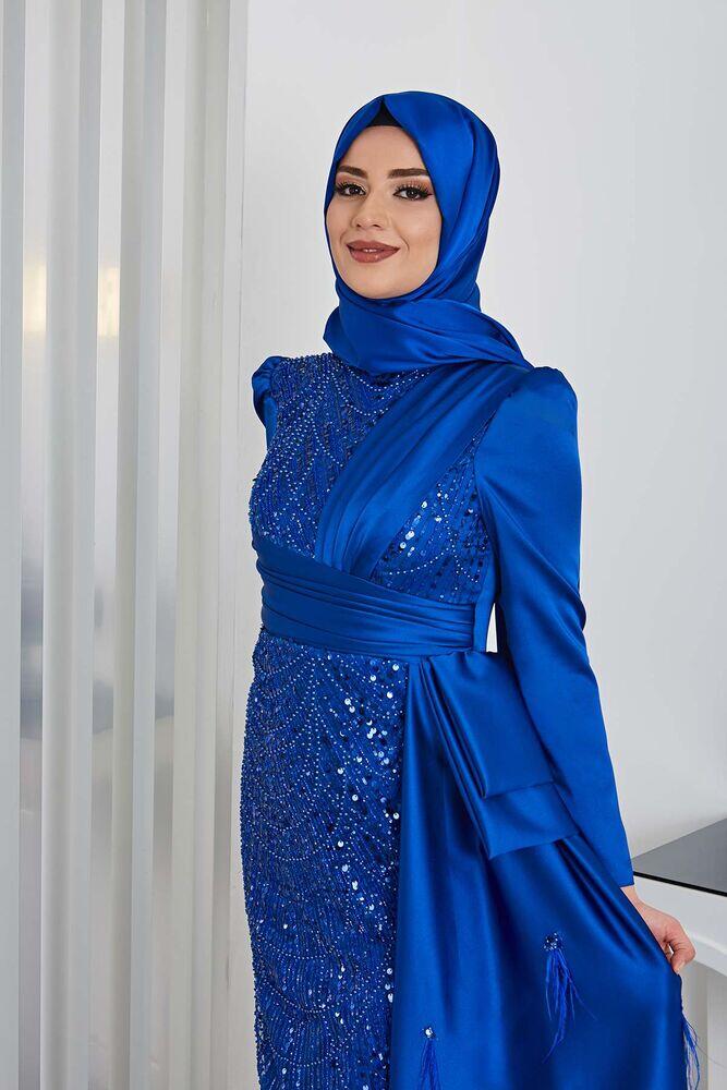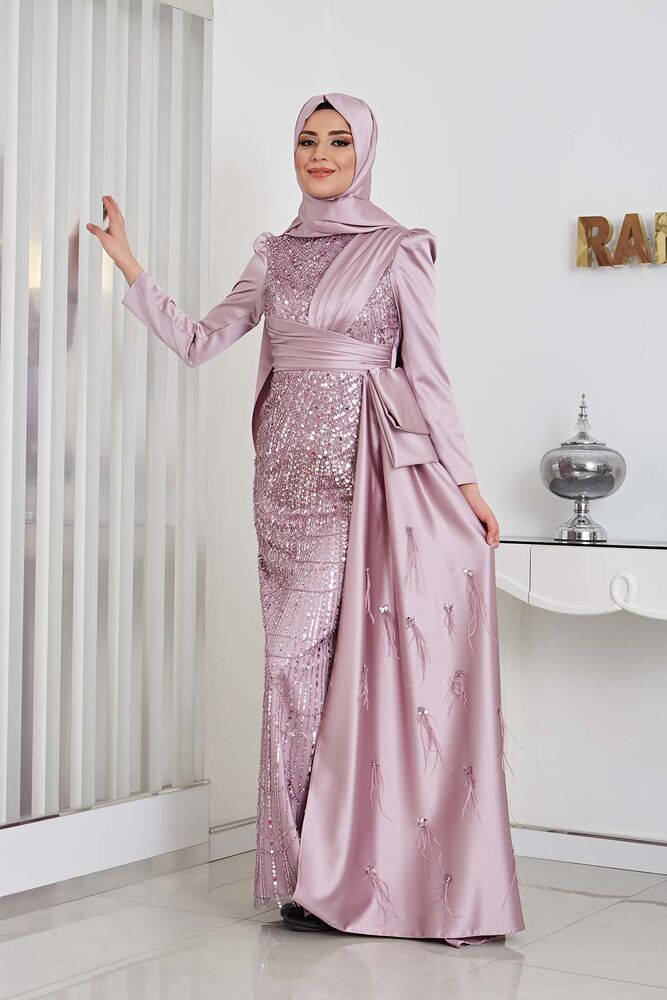 Gelince Haber VerBoncuk Detaylı Drapeli Kuyruklu Dicle Saten Tesettür Abiye