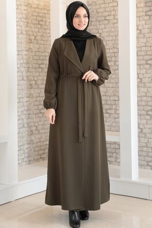 Boydan Düğmeli Ferace Elbise Haki - Fashion Showcase Design - FSC3041
