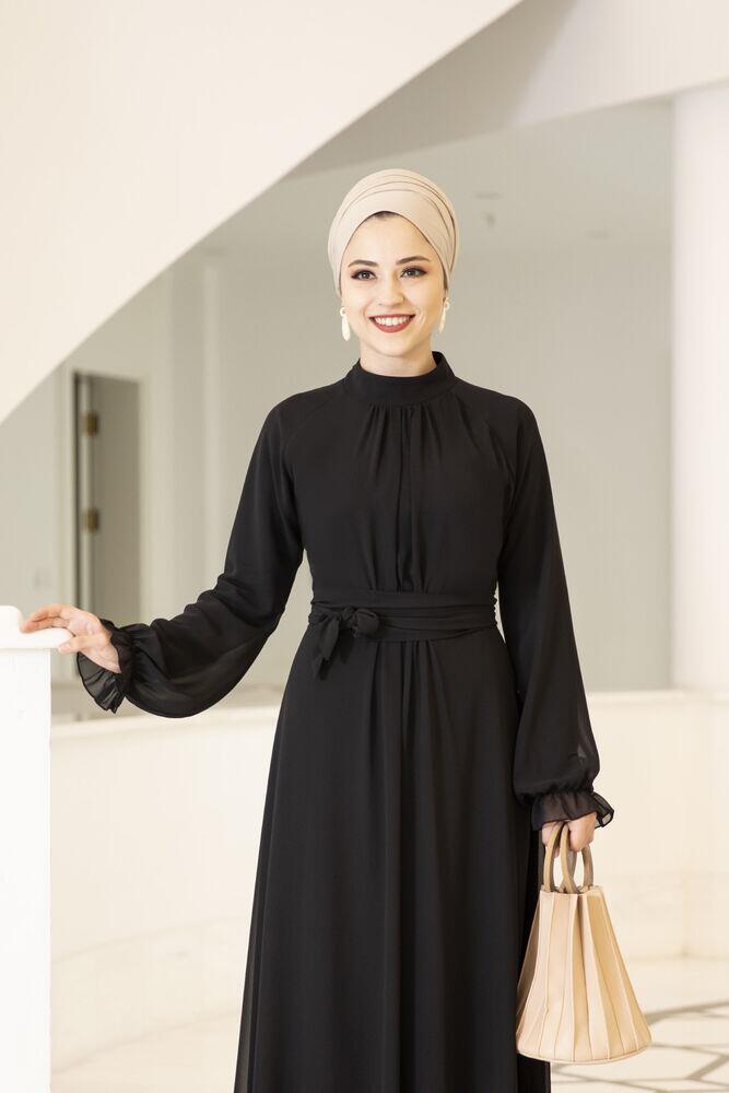 Büzgülü Elbise Siyah ALM2057