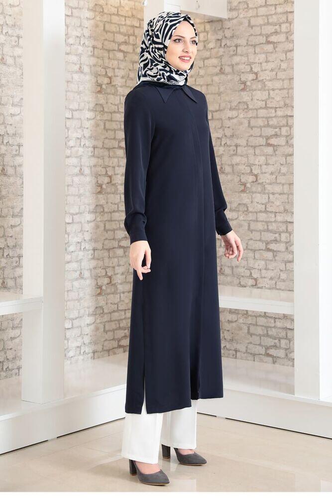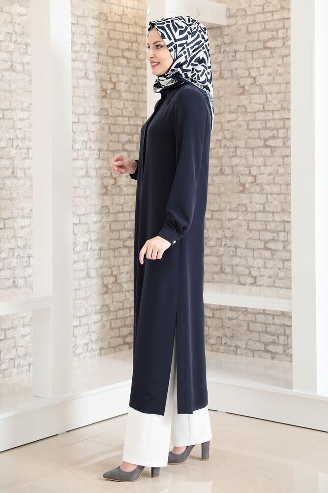 Costume - Longue Tunique & Pantalon - Crêpe - Bleu Marine - MDV2006 |