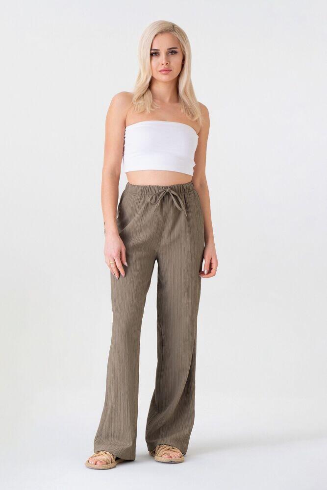 Crinkle Beli Lastikli Cepli Rahat Kadın Pantolon,