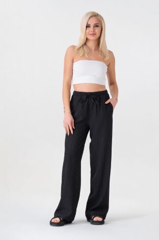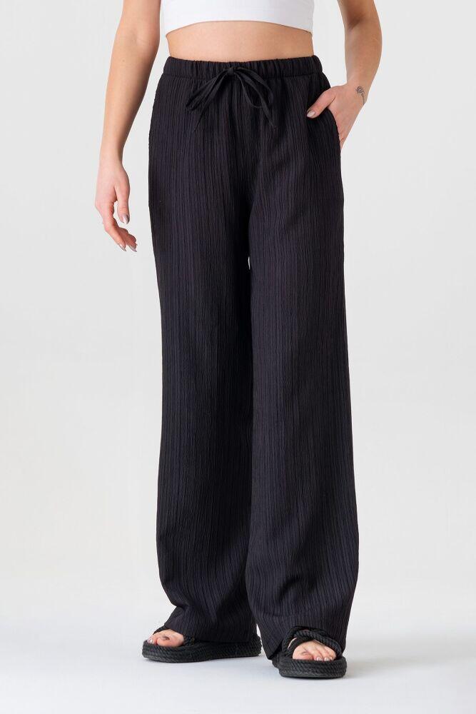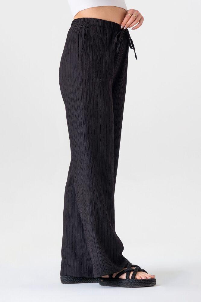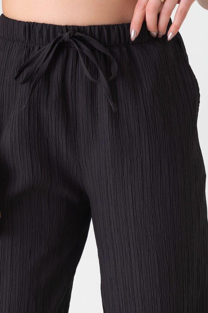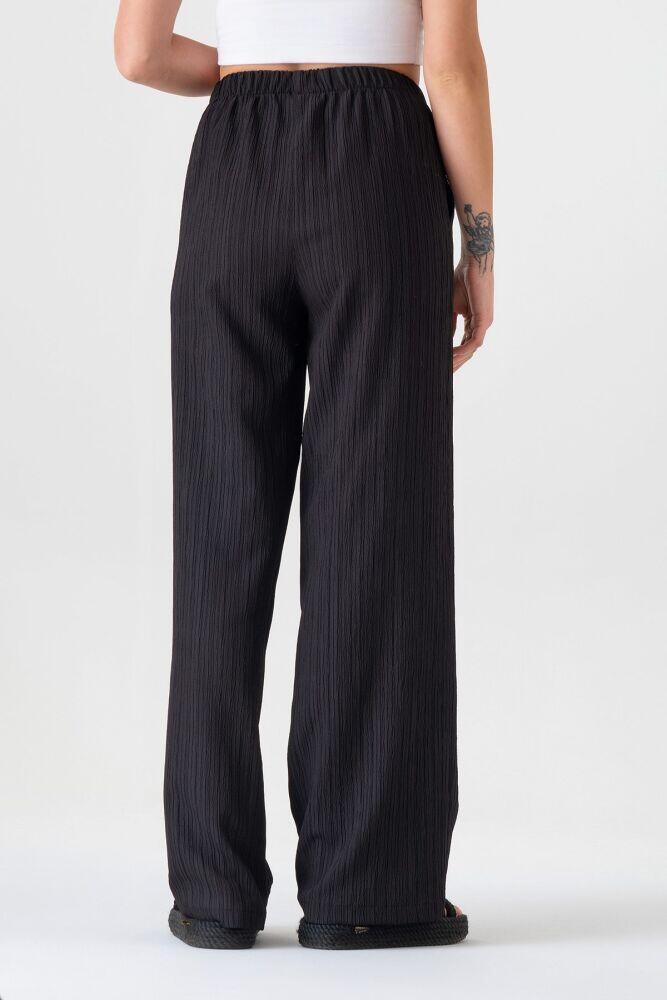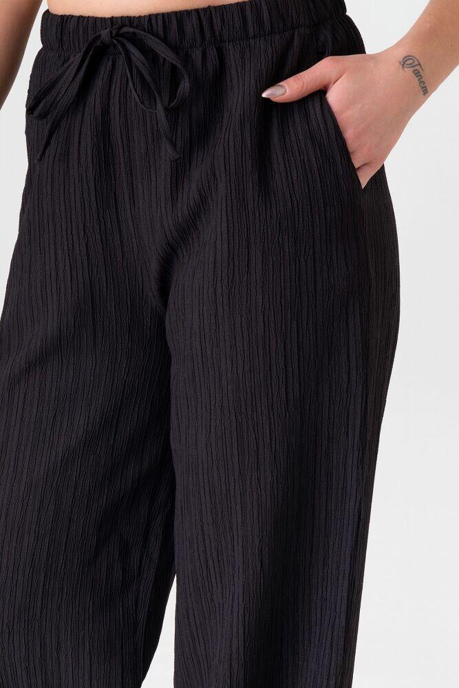 Crinkle Beli Lastikli Cepli Rahat Kadın Pantolon - Siyah - FSC3143