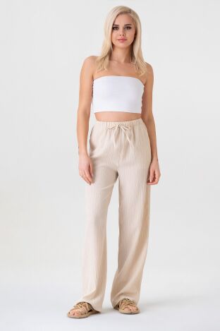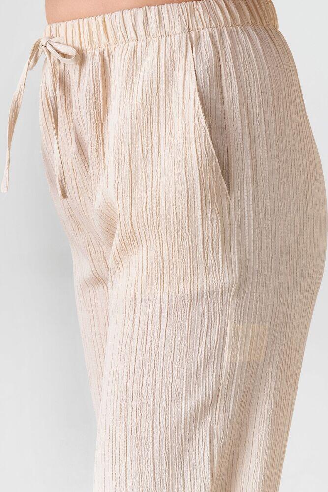 Faites-moi savoir quand il arriveCrinkle Beli Lastikli Cepli Rahat Kadın Pantolon,