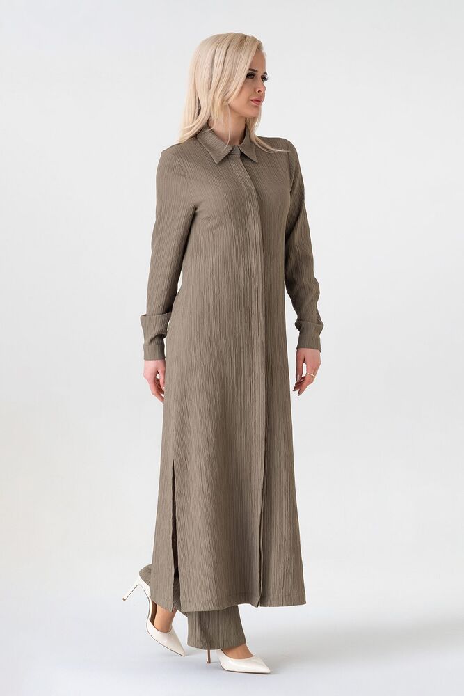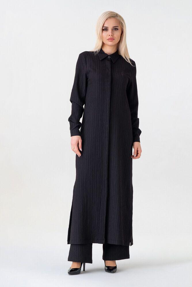 Gelince Haber VerCrinkle Kumaş Uzun Gizli Patlı Tunik