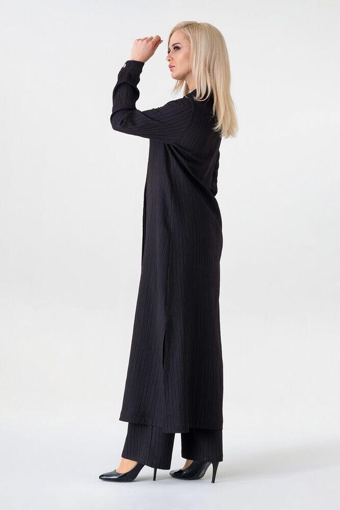 Uzun Tunik gizli patlı ve boydan gizli düğmelidir. Ferace ve tesettür elbise olarak da kullanılabilir. Esnek yapıdadır. paça kısmında yırtmaçları mevcuttur. 4 mevsim kullanımı uygundur. 1 Beden büyük satın almanızı öneriyoruz.