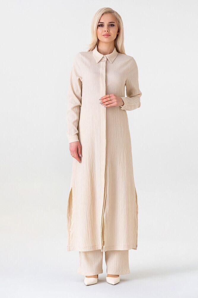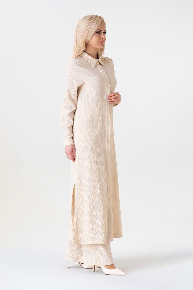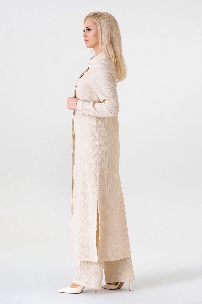 Uzun Tunik gizli patlı ve boydan gizli düğmelidir. Ferace ve tesettür elbise olarak da kullanılabilir. Esnek yapıdadır. paça kısmında yırtmaçları mevcuttur. 4 mevsim kullanımı uygundur. 1 Beden büyük satın almanızı öneriyoruz.