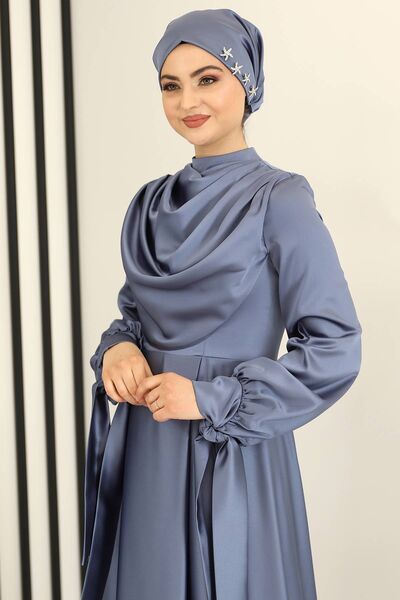 Gelince Haber VerDegaje Tesettür Abiye Elbise İndigo
