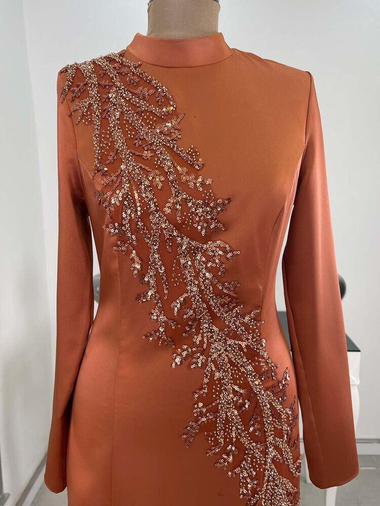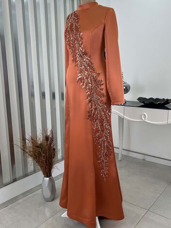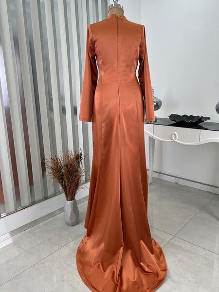 Deniz Tesettür Saten Abiye Elbise Rana Zenn