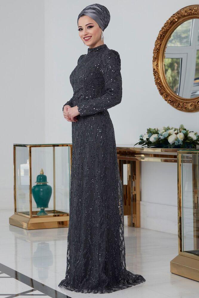 Dila Abiye Antrasit - Dresslife Tesettür Giyim - ALM2100