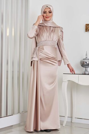 Faites-moi savoir quand il arriveTaş Detaylı Drapeli Kuyruklu Alina Saten Tesettür Abiye