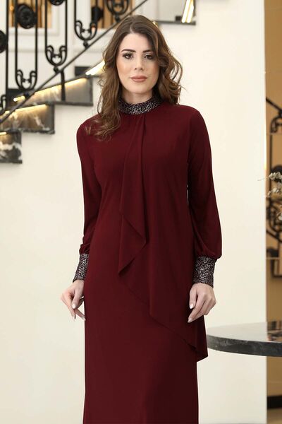 Efsane Candy Elbise Bordo - Elben Tesettür Giyim - ELN1014