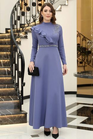 Elif Taşlı Tesettür Elbise Mavi - Elben Tesettür Giyim - ELN1015