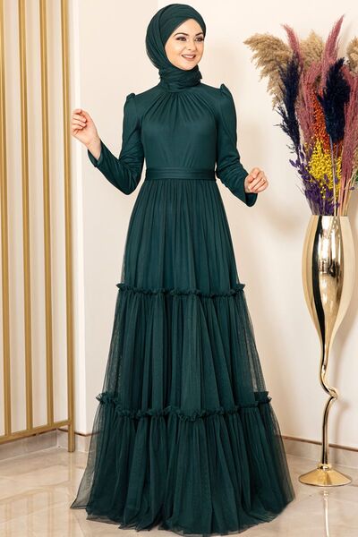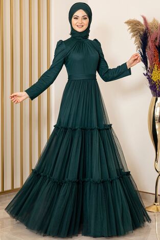 Eteği Fırfırlı Tül Abiye Petrol - Fashion Showcase Design - FSC2087