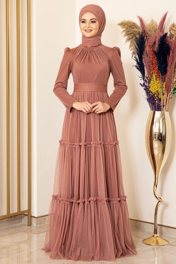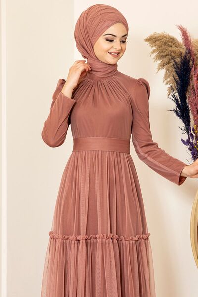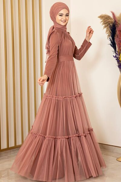 Eteği Fırfırlı Tül Abiye Soğan Kabuğu - Fashion Showcase Design - FSC2087