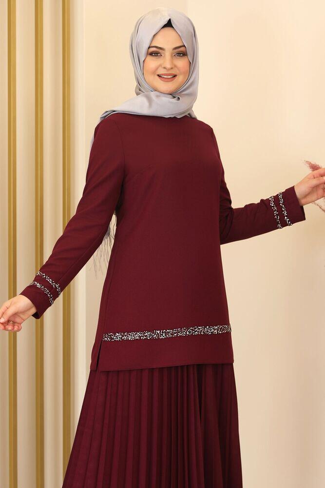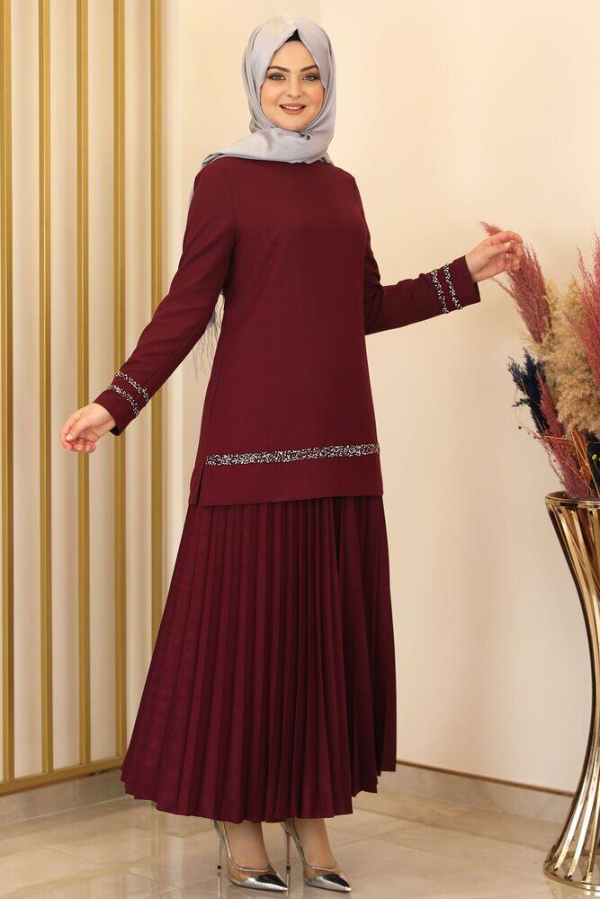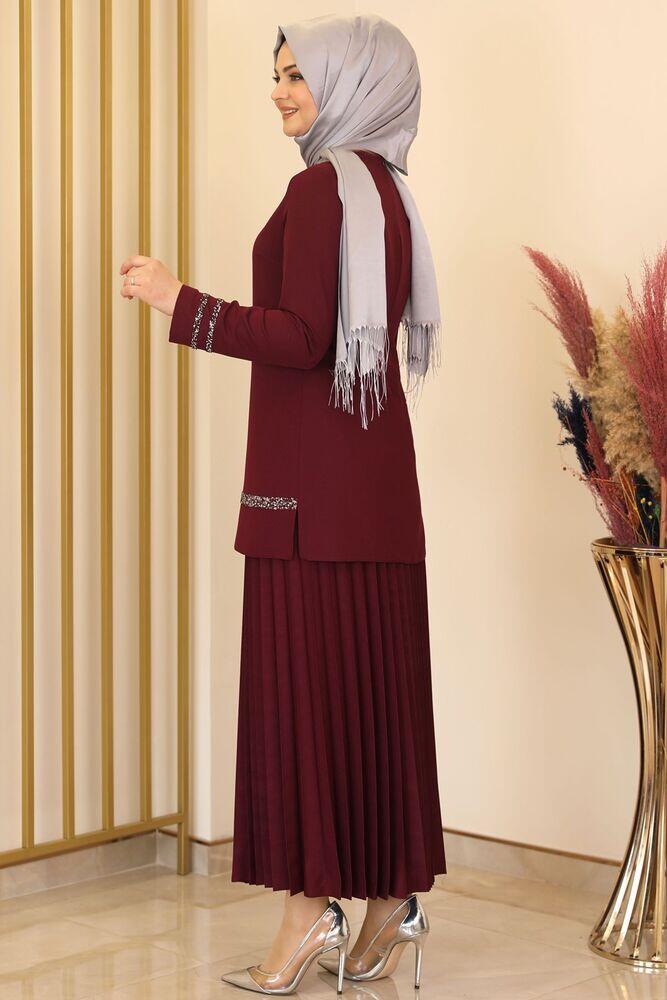 Eteği Piliseli İkili Takım Bordo - Fashion Showcase Design - ALY1003