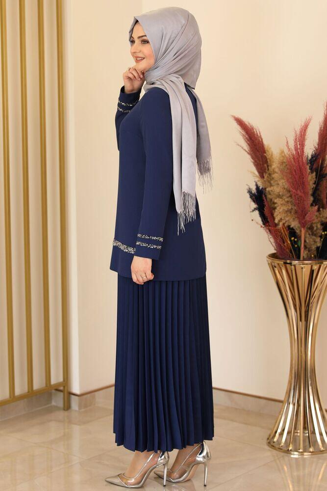 Eteği Piliseli İkili Takım İndigo - Fashion Showcase Design - ALY1003