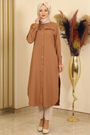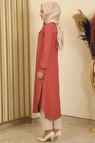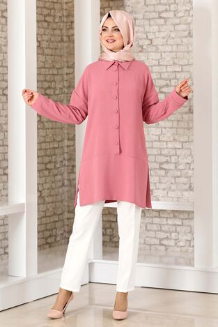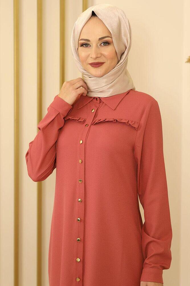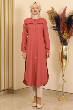 Fırfırlı Uzun Tunik Gül Kurusu - Fashion Showcase Design - FSC2118
