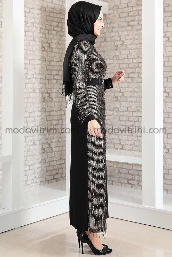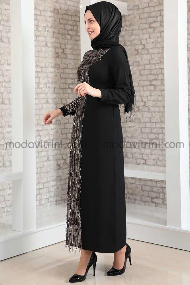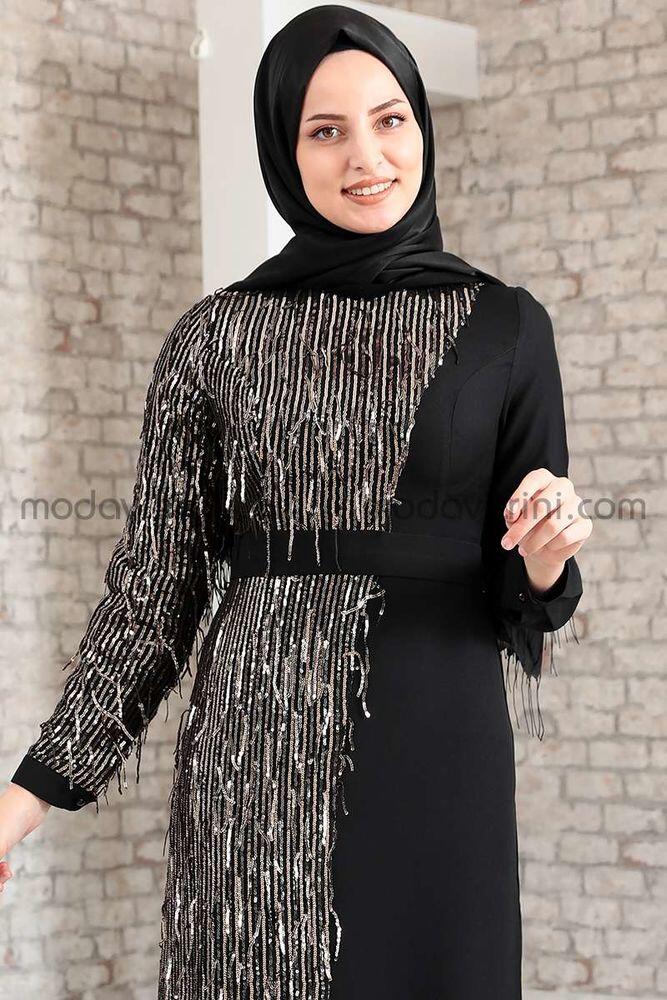 Firuze Dress - Fringed - Black & Gold - MDV2039 |