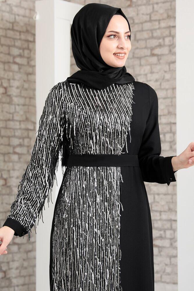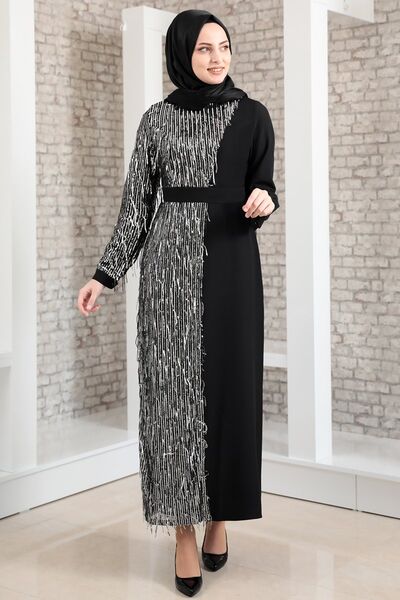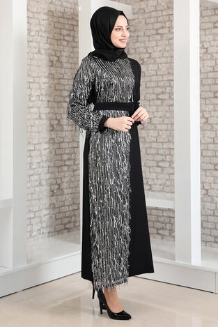 Firuze Pul Payet Abiye Elbise Siyah FSC2053