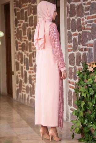 Firuze Saçaklı Elbise Pudra - MDV2039