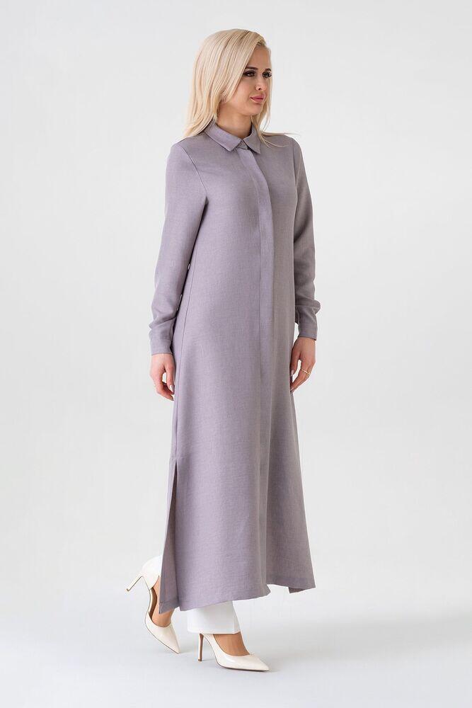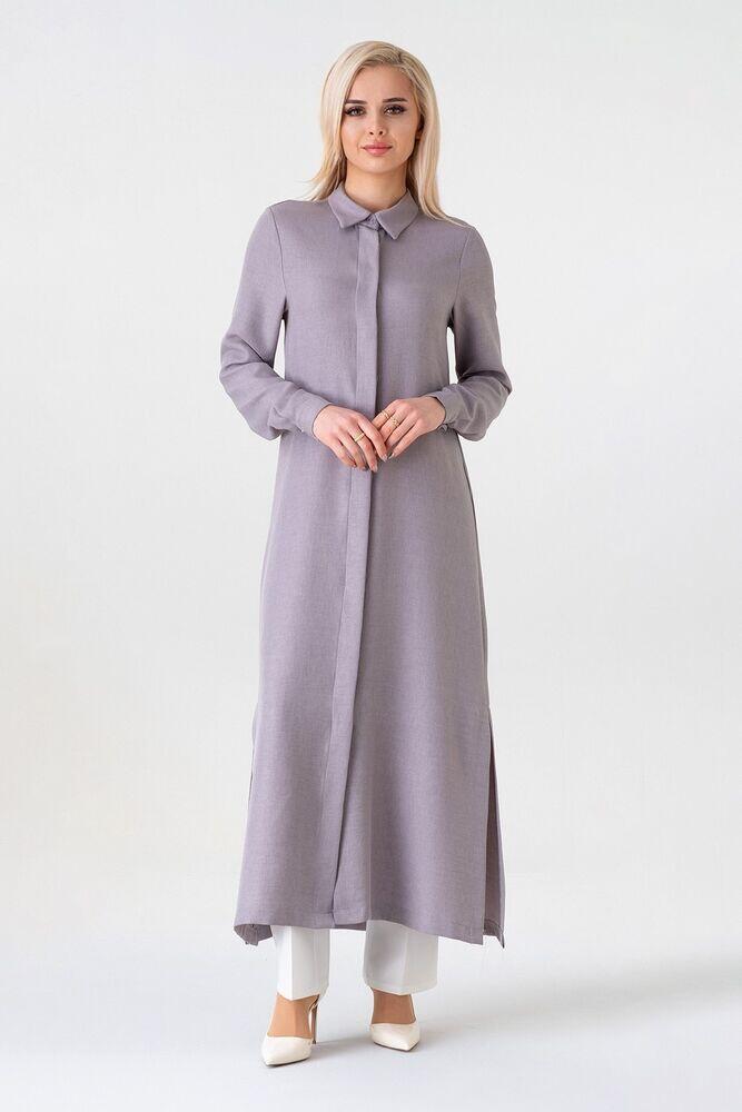 Keten Görünümlü Kumaş Uzun Gizli Patlı Tunik