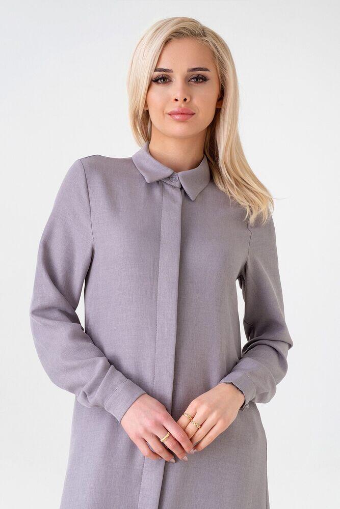 Gizli Patlı Uzun Tunik Keten Görünümlü - Gri - FSC3140