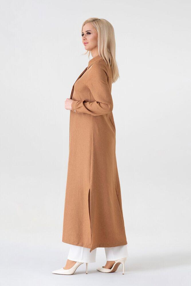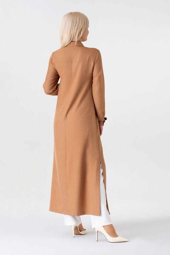 Uzun Tunik gizli patlı ve boydan gizli düğmelidir. Ferace ve tesettür elbise olarak da kullanılabilir. Esnek yapıdadır. paça kısmında yırtmaçları mevcuttur. 4 mevsim kullanımı uygundur. 1 Beden büyük satın almanızı öneriyoruz.