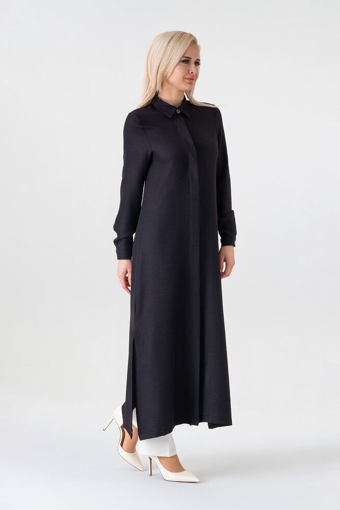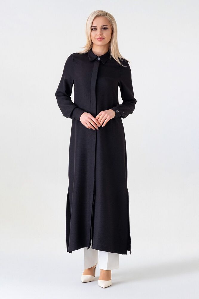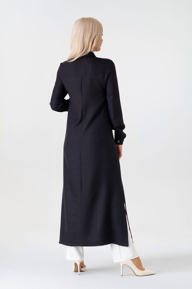 Uzun Tunik gizli patlı ve boydan gizli düğmelidir. Ferace ve tesettür elbise olarak da kullanılabilir. Esnek yapıdadır. paça kısmında yırtmaçları mevcuttur. 4 mevsim kullanımı uygundur. 1 Beden büyük satın almanızı öneriyoruz.