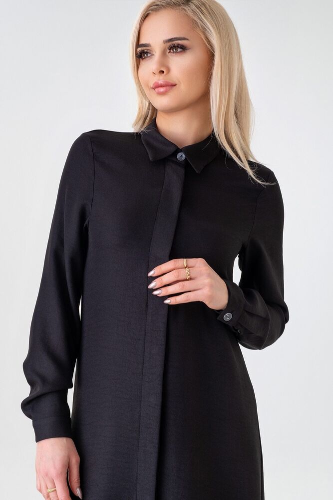 Gelince Haber VerKeten Görünümlü Kumaş Uzun Gizli Patlı Tunik