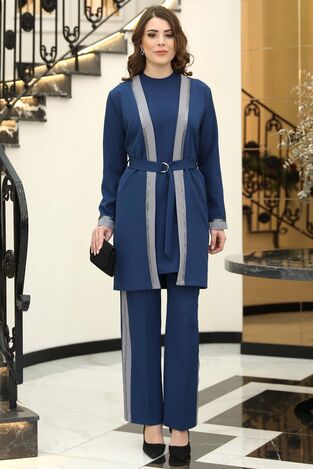 Havin Tesettür Üçlü Takım Petrol - Gri - Elben Tesettür Giyim - ELN1212