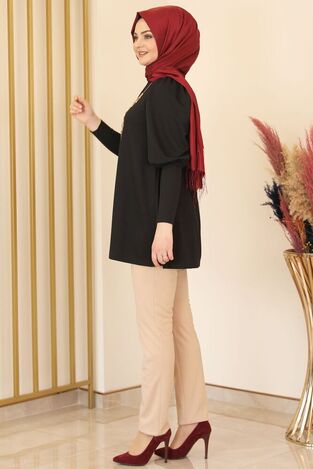 Ürün scuba örme kumaştan üretilmiştir. Kırışmayan kumaştır ve esnektir. 4 mevsim kullanımı uygundur. Tunik boyu ; 80 cm'dir.Pantolon boyu 95 cm'dir. Manken Boyu; 1.72 Manken Bedeni; 38