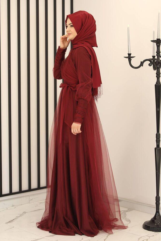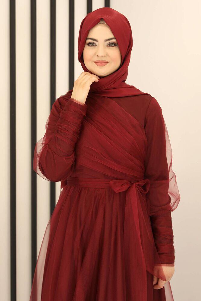 İnci Tül Abiye Bordo - Fashion Showcase Design - FSC2158