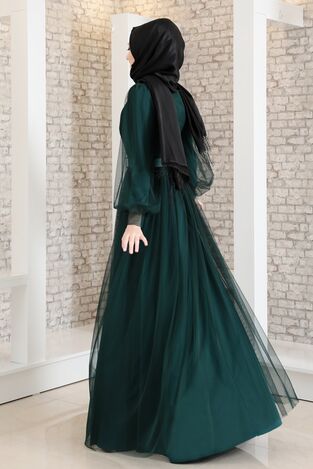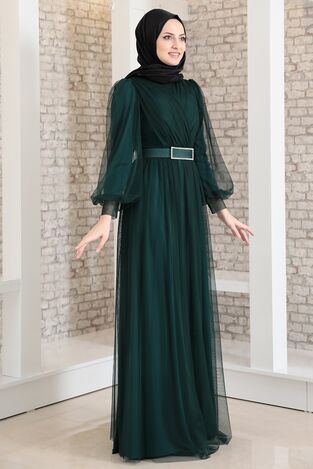 Robe de Soirée - Ceinture en Pierre - Tulle Détaillé - Petrol - FSC2020 |
