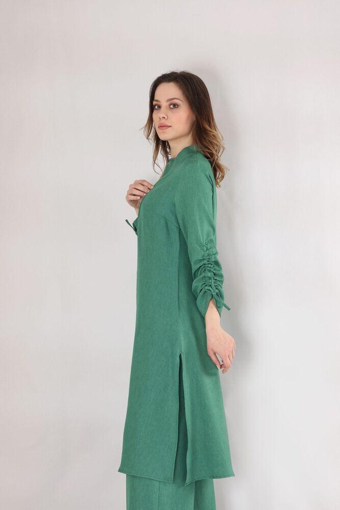 Keten Kolu Tünel Detay Kimono - Yeşil - FSC3113