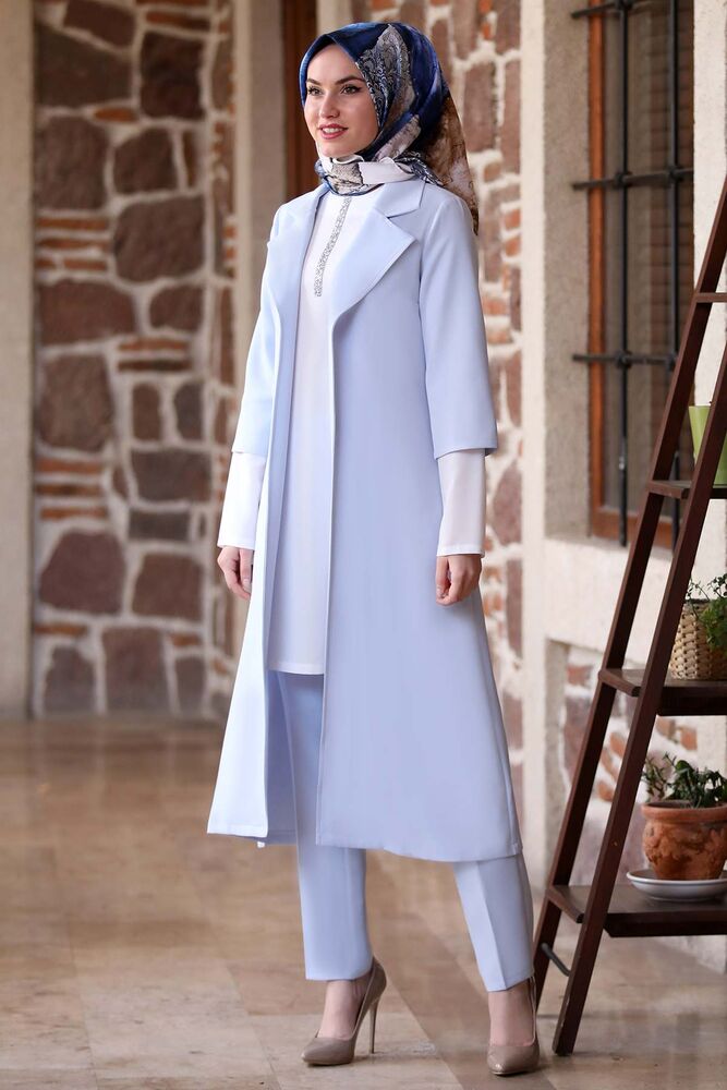 Ürün krep kumaştır, ceket, uzun kol bluz ve pantolon olmak üzere üç parçadan oluşmaktadır.Esnek yapısı sayesinde kırışmaya dayanıklı ve nefes alıcı özelliğe sahiptir. Tam kalıptır, kaç beden giyiyorsanız onu tercih edebilirsiniz. |
