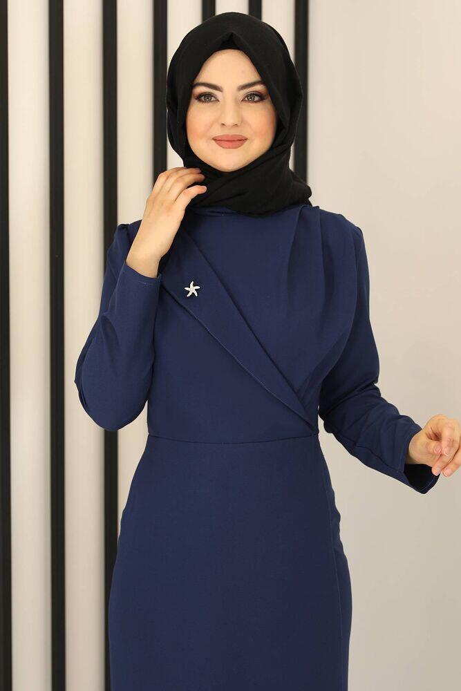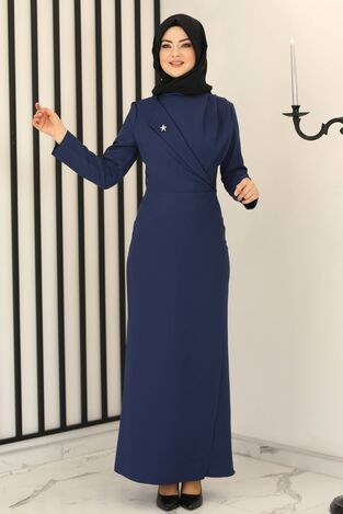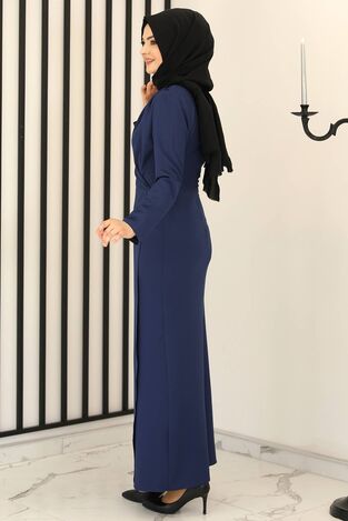 Kruvaze Elbise İndigo - Fashion Showcase Design - FSC2159