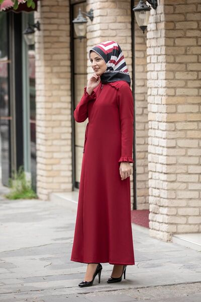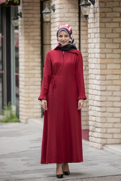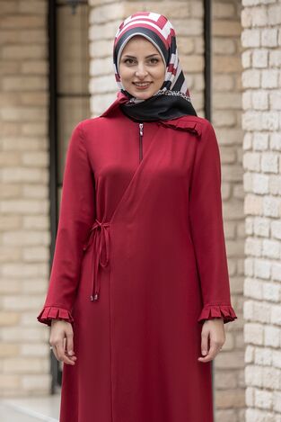 Notify me when its in stockKrep kumaştan üretilmiştir. Önü boydan fermuarlıdır. Kruvaze şekilde belden bağcıkla ayarlanabilir kapak detayı vardır. İçerisinde farklı bir ürün varken kullanım için 1 beden büyük, feraceyi elbise olarak kullanmak için kendi bedeninizi tercih etmelisiniz. Ürün boyu 142 CM, Manken boyu 1.78, Manken bedeni 38
