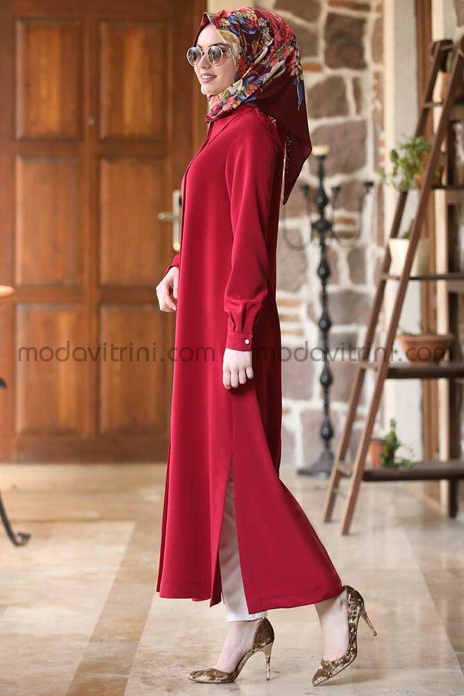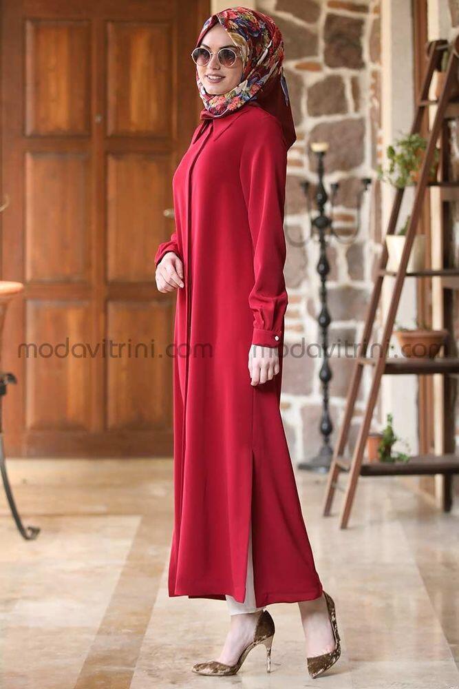 Longue Tunique - Crêpe - Bordeaux - MDV2003 |