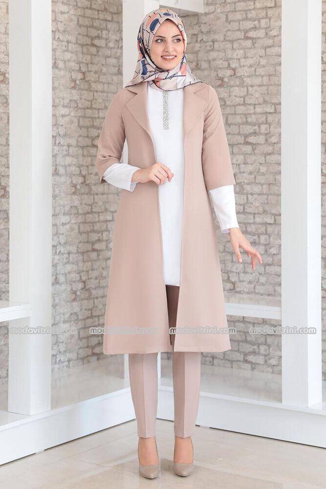 Manches à motifs - Trois pièces - Robe tailleur - Couleur poudre - AMN1097 |