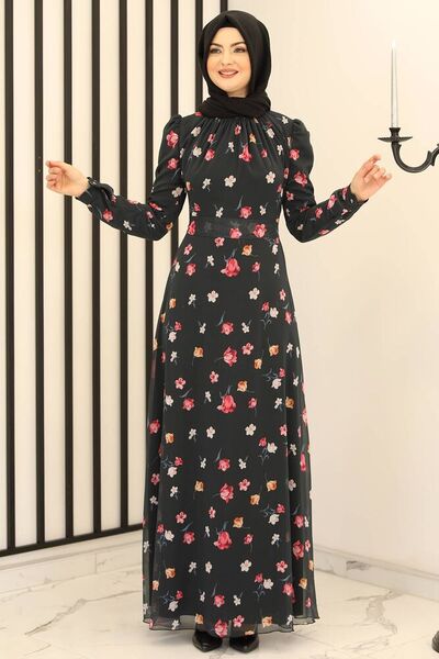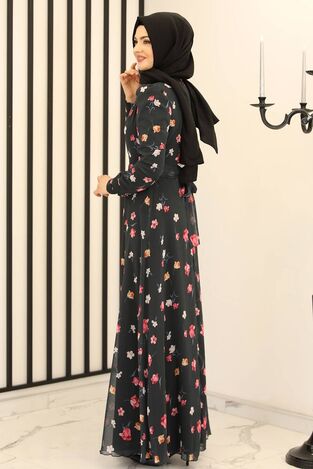 Manolya Şifon Elbise Antrasit - Fashion Showcase Design - FSC2165