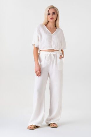 Notify me when its in stockMüslin Bol Paça %100 Pamuk Beli Lastikli Kadın Pantolon