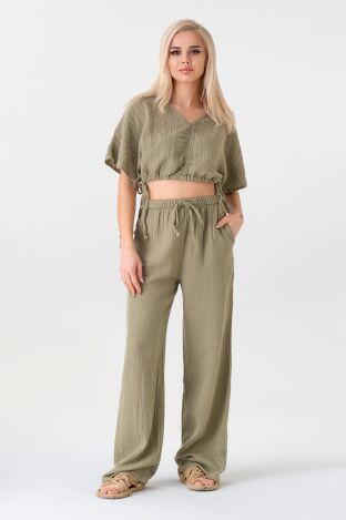 Faites-moi savoir quand il arriveMüslin Bol Paça %100 Pamuk Beli Lastikli Kadın Pantolon