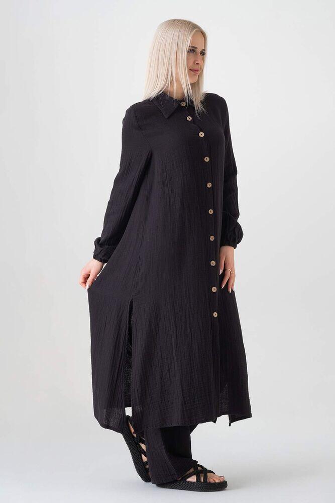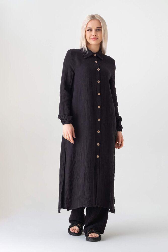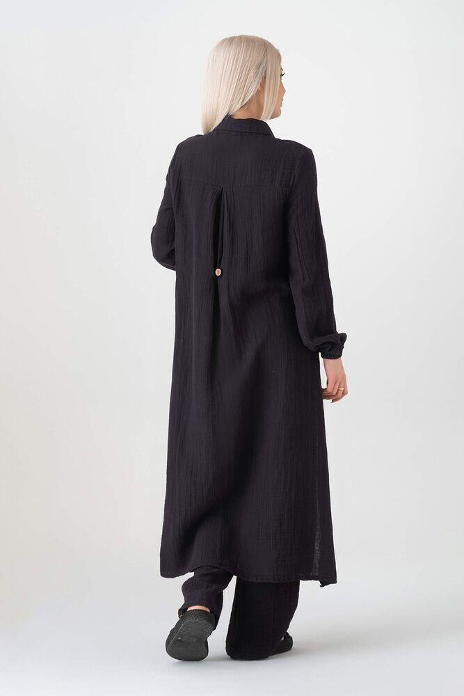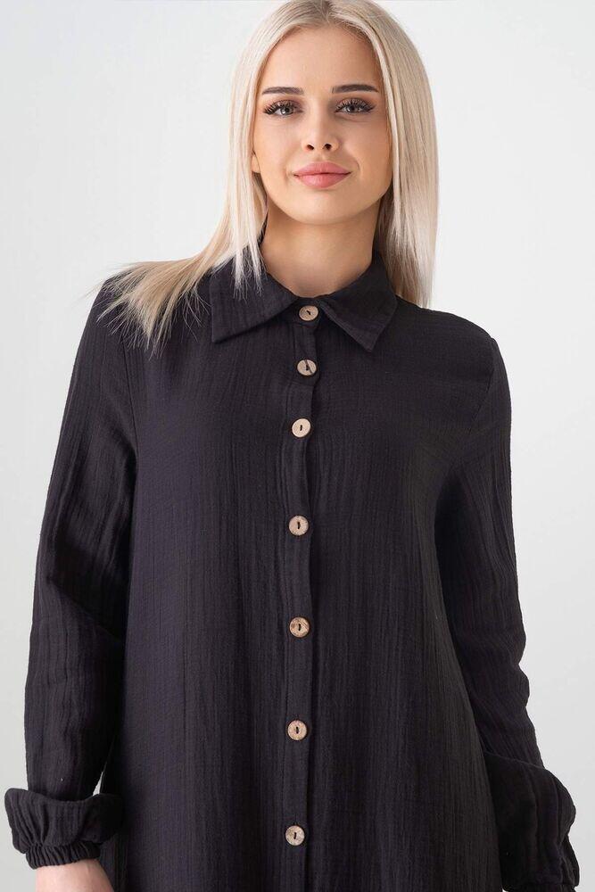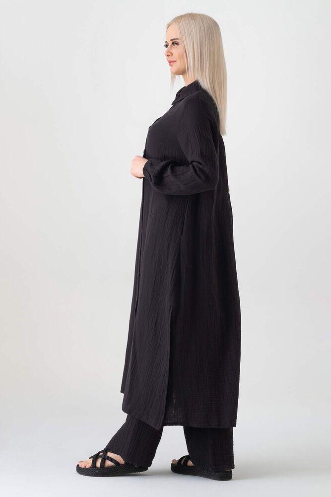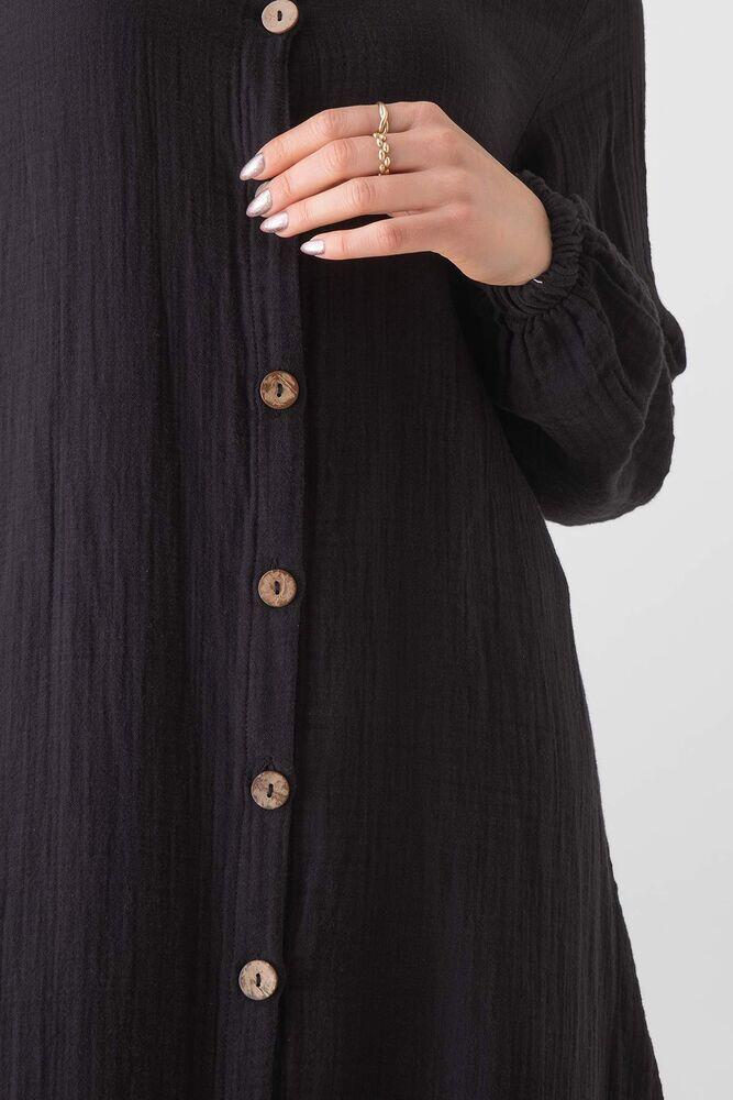 Müslin Kumaş %100 Doğal Pamuk Uzun Nergis Tunik Tesettür - Siyah - WNR2069
