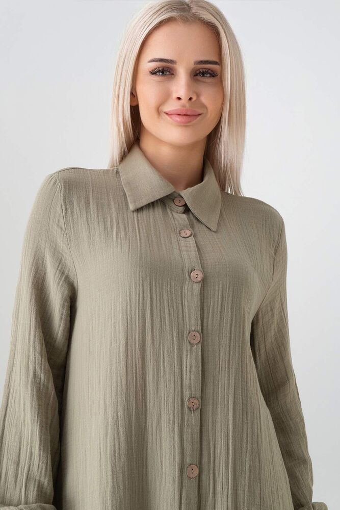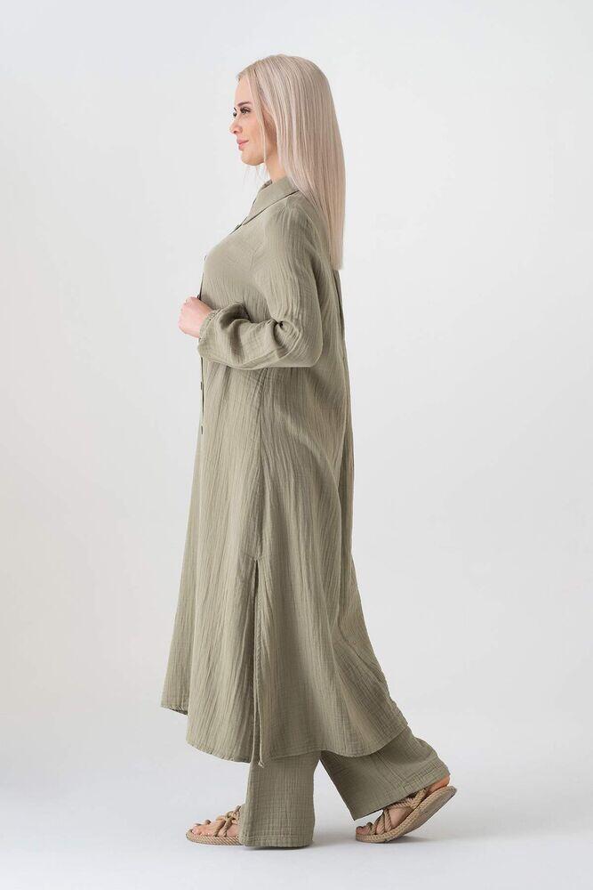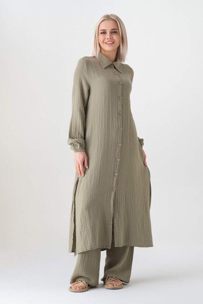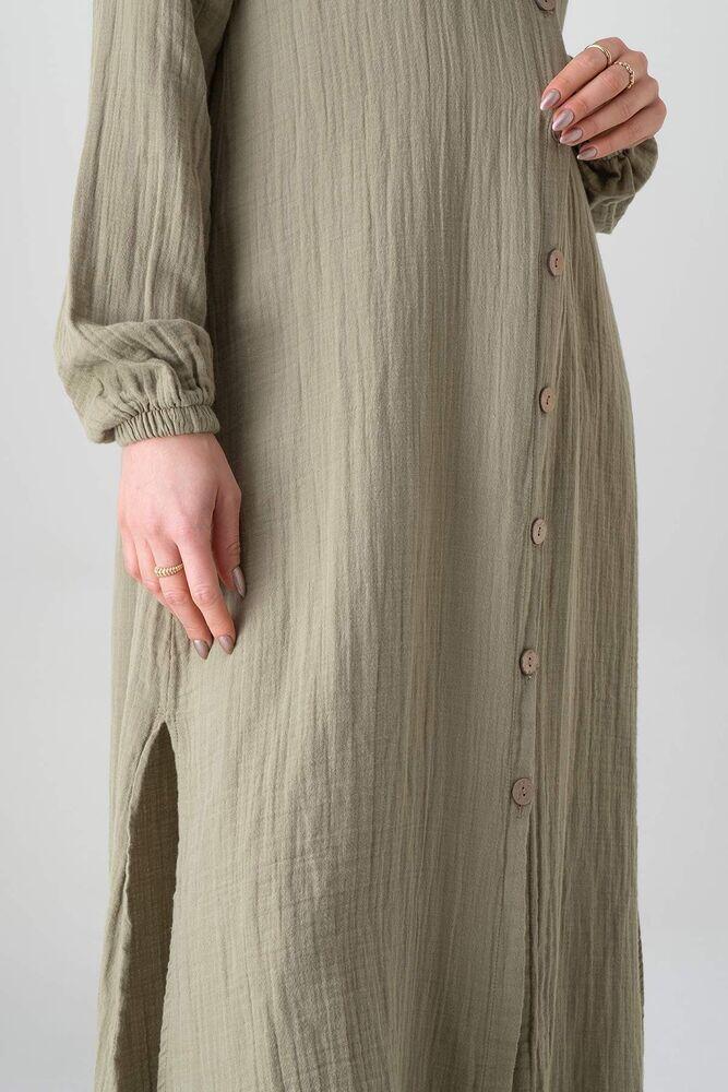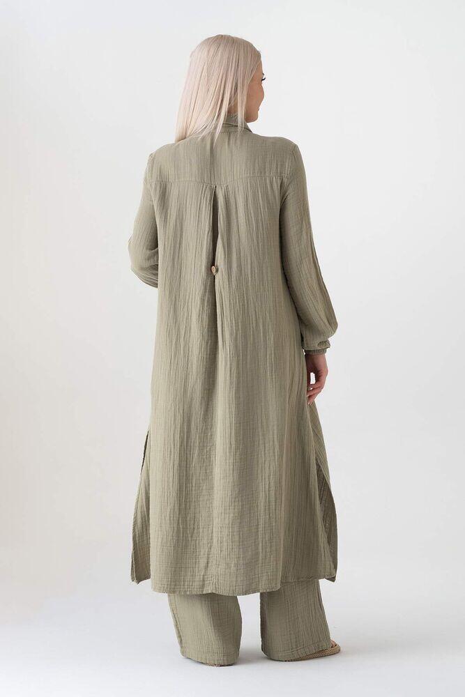 Müslin Kumaş %100 Doğal Pamuk Uzun Nergis Tunik Tesettür - Yeşil - WNR2069