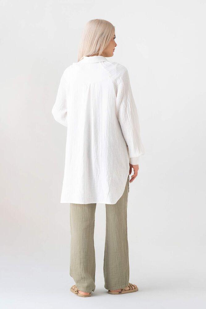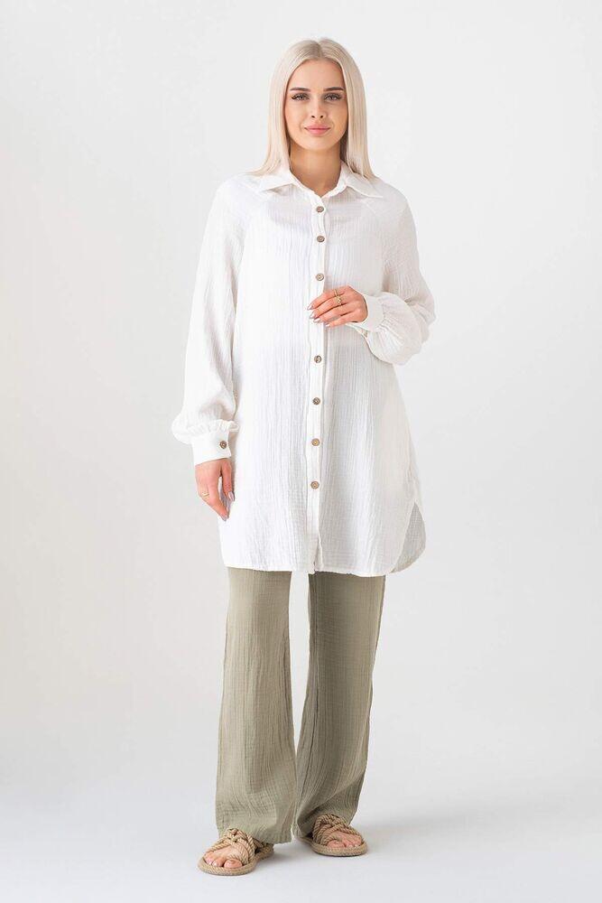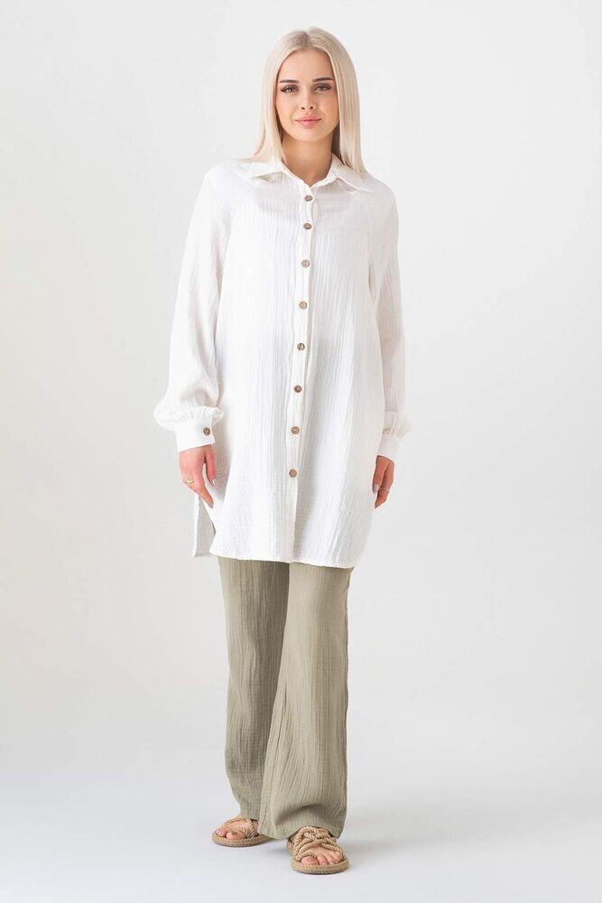 Müslin organik %100 Pamuk kumaştan üretilmiştir. Natural yapısı sayesinde geri dönüşümü destekler. Düğmeleri organik hindistan cevizi kabuğundan üretilmiş olan müslin kadın gömlek tüm yaş gruplarına yaz aylarında kaliteli vakit geçirmeyi garanti eder. Tesettür gömlek olarak da kullanılabilir ve tüm alanlara hitap eder.