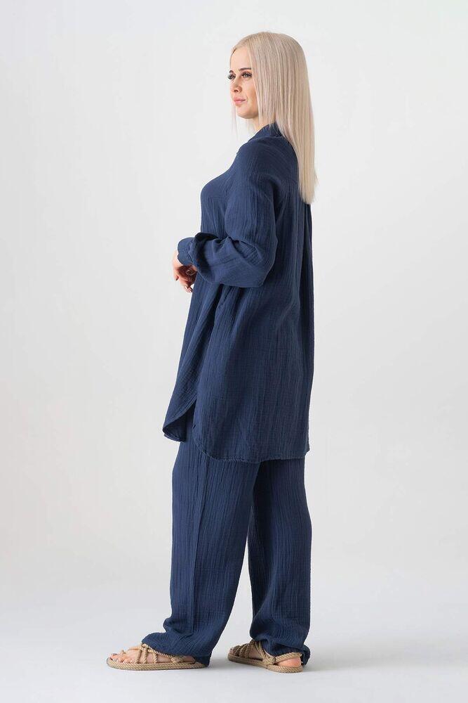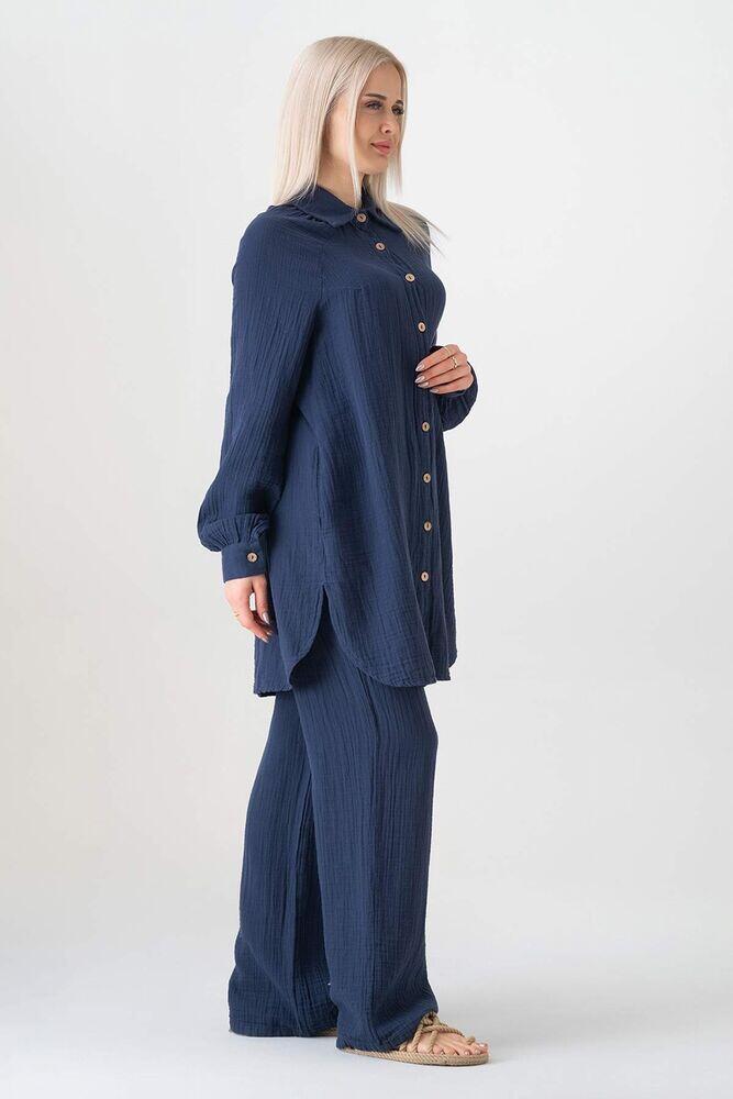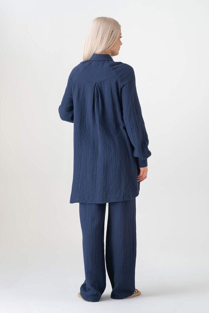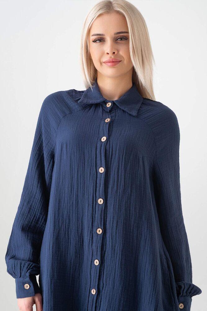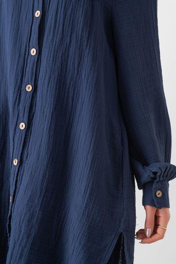 Müslin Kumaş %100 Pamuk Reglan Kol Bayan Gömlek - Lacivert - WNR2512